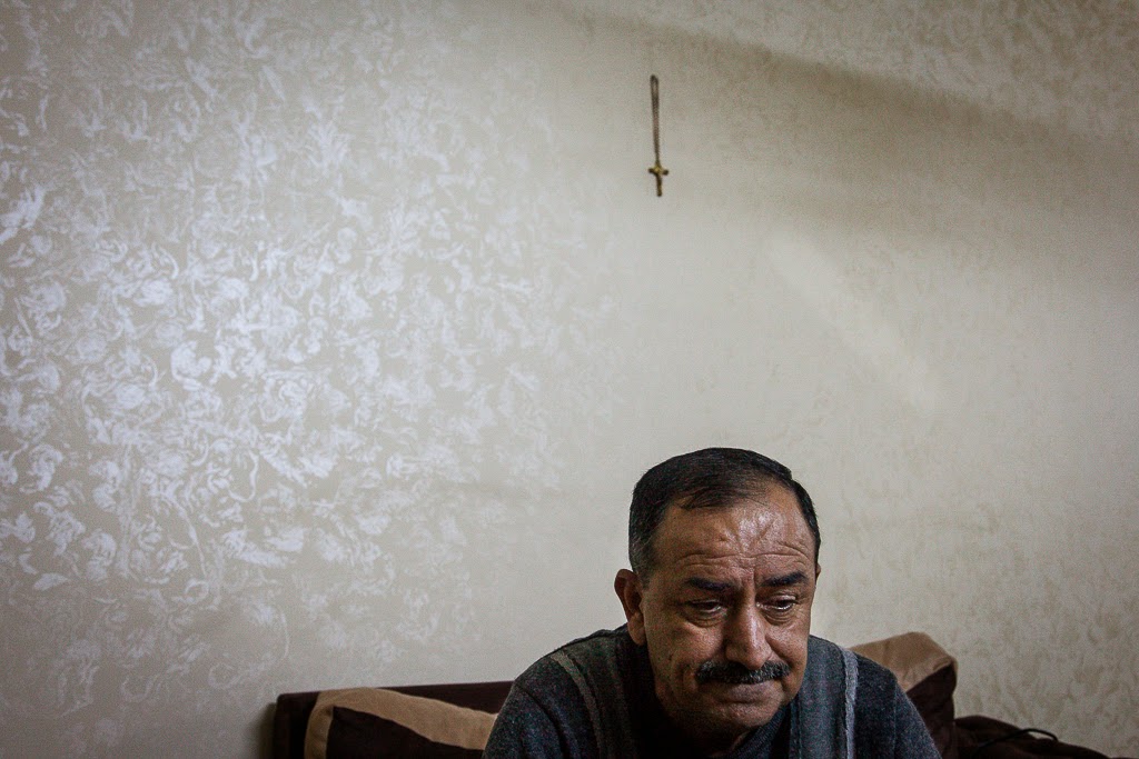 Tras la declaración, baja la cabeza y se revuelve en el sillón de la casa parroquial de un monasterio de Amán, Jordania. Está sentado con su amigo Saef Tomas, que aprieta un rosario y pasa las cuentas. Los dos escaparon hace seis meses de su ciudad, Qaraqosh, a 30 kilómetros de Mosul, y desde entonces se refugian aquí. Era el 6 de agosto y los peshmerga, los soldados kurdos, se retiraron de la población para centrar su defensa en Erbil.